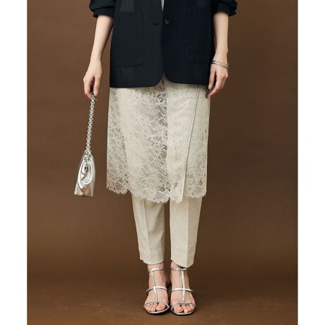 [型番:ZZ2VLM0304]■デザイントレンドのレース素材を使用したラップスカートです。お手持ちのパンツやロングスカートに重ねるだけで、旬のレイヤードスタイルが完成します。いつものコーディネートにプラスするだけで、一気にこなれた印象に仕上がるアイテムです。※画像はサンプルを使用している為、実際にお届けする商品と仕様、加工、サイズが若干異なる場合がございます。予めご了承ください。※撮影環境の都合上、実際の商品と色味が異なって見える場合がございます。