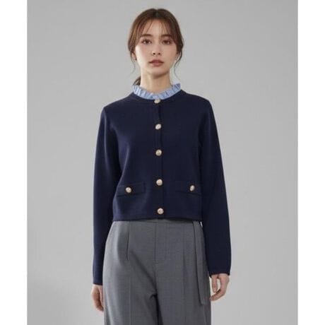 【秋冬に即完売したニットジャケットカーディガンが春素材になって再登場!】【Point】・フリル襟が顔まわりをふんわり華やかに見せ、かわいらしさをプラスします。・上品なエンブレムボタンとフリル襟の組み合わせが“清楚フェミニン”と”トレンドのレイヤードスタイル”の着映えを叶えます。・胸元と裾のポケット風デザインがアクセントになり、シンプルながらも高見えする一枚です。・フリル襟は取り外し可能な2WAYタイプ。・軽く柔らかな着心地で長時間着用も安心で、通勤にもお出かけにも使える、優秀なアイテムです。ケア方法:手洗い可能透け感:なし裏地:なし伸縮性:あり光沢感:なし生地の厚さ:中肉