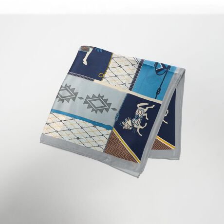 レトロなムードを感じる配色が目を惹く馬柄のシルクスカーフ。