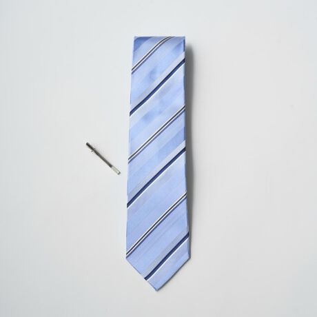 端正なストライプネクタイと、シンプルで洗練されたタイバー(ネクタイピン)を、スタイリッシュなシリンダー型の専用BOXに詰め合わせた限定セットです。 これ一つでVゾーンが完成する、タケオキクチならではのトータルな美学が息づいています。
