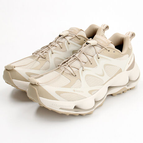 アッパーは軽量で通気性に優れたメッシュをベースにTPUで補強し、また優れた透湿防水性能を誇る「GORE-TEX(R)」メンブレンを搭載。さらに踵部にはTPU補強ヒールカウンターを配置することで安定性が向上。またスピードシューレースにより着脱とフィット調整が簡単になりました。目を惹くマシュマロ状のような外観のミッドソールには、軽量でクッション性と機能持続性に優れたサステナブルミッドソール "FLOATPRO?"フォームを2段構造で採用し、その間には捻じれを抑制し安定性と剛性を向上させるナイロンプレート「FLEXPLATE?」を搭載。アウトソールには、濡れた路面やラギッドなトレイルで最高レベルのグリップ性を発揮する"Vibram MEGAGRIP × Vibram TRACTION LUG" アウトソール (ラグ深3mm) を採用しました。またサステナブル素材も取り入れ環境負荷軽減にも対応しました。
