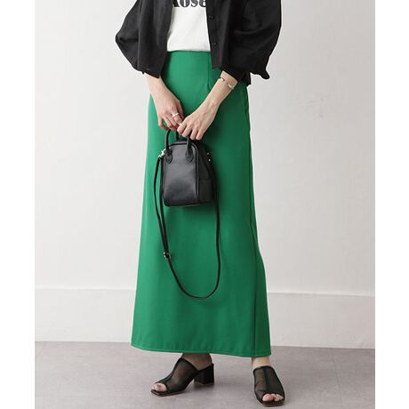 滑らかな光沢感のある生地表情が大人カワイイ印象をプラス。