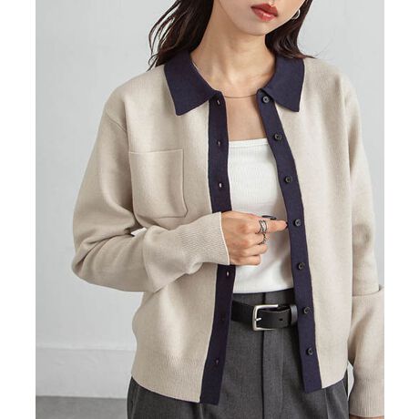 ・コンパクトながらシンプルになりすぎなり襟付き仕様カーディガン