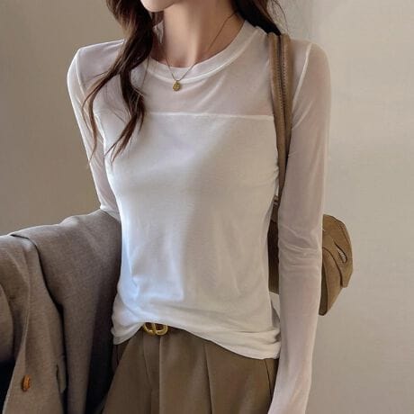 なめらかな質感と上品な透け感が魅力のシアートップス。
