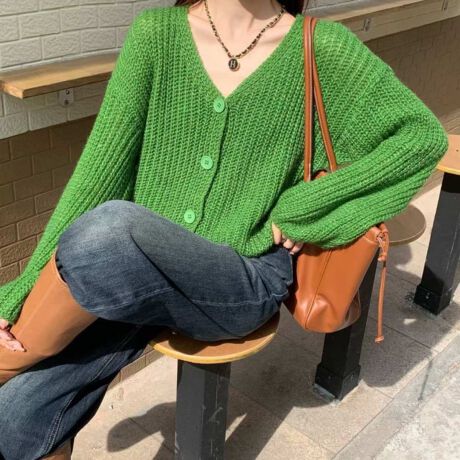 ほどよく開いたVネックが首元をすっきり見せてくれるニットカーディガン。