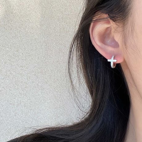 繊細なクロスモチーフが印象的なフープピアス。