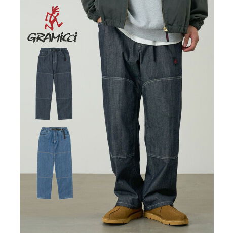 岡山産のシャンブレーは、昔ながらの織機によって、ゆっくり丁寧に織られ、非常に雰囲気があり、軽くソフトな着用感です。たて糸にインディゴ糸、よこ糸は白糸で、デニムのような色合いながらもシャンブレー独特の霜降り調の風合いがあります。ブランドのルーツであるクライミングシーンにおける機能性はもちろん、ダブルニー仕様のバギーシルエットで、ホワイトステッチワークがフレッシュな印象です。
