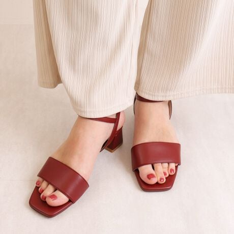 ・つま先側のストラップはしっかりとした幅で安定感を、アンクルストラップは細めにして足首が華奢に見えるような仕様にしています。