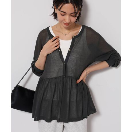 UVカット 接触冷感 ペプラム 2way シアー カーディガン トップス