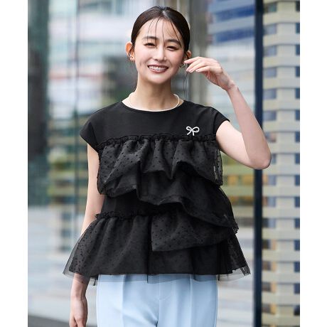 カットソーにドットオーガンジーとチュールの異素材を重ねたデザイン。