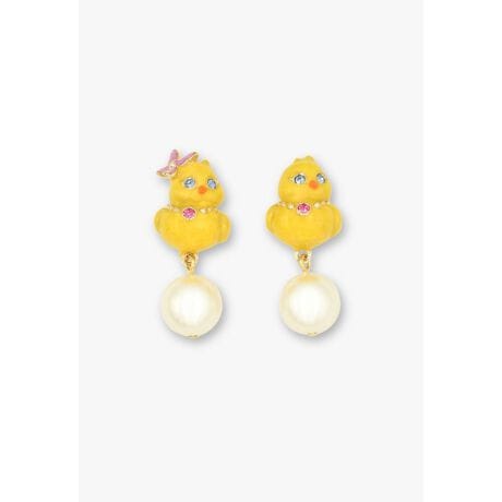 ネックレスを身につけたキュートなひよこモチーフのピアス。