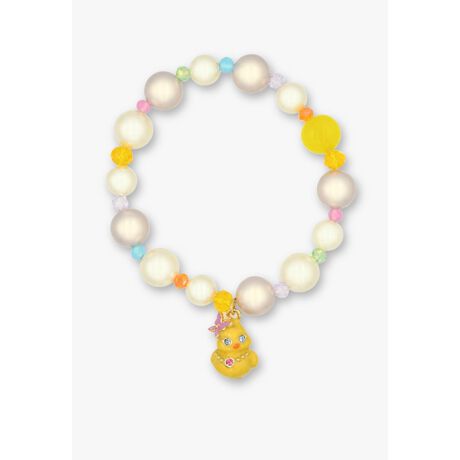 ネックレスを身につけたキュートなひよこモチーフのブレスレット。