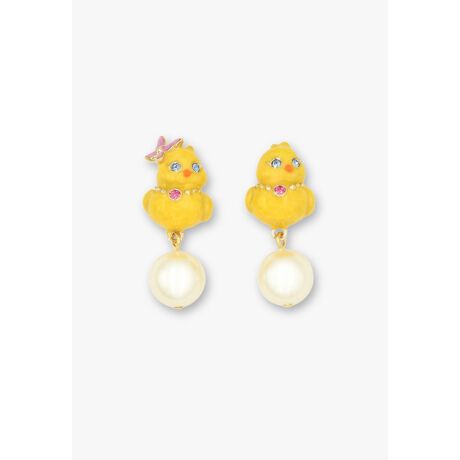 ネックレスを身につけたキュートなひよこモチーフのイヤリング。