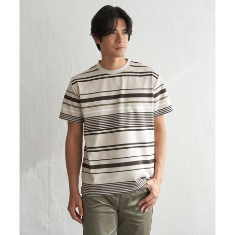 ストレッチポンチ素材を使用したボーダーTシャツ。