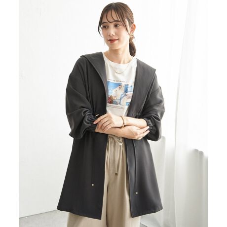 フード付きデザインがほどよいカジュアル感を添え、日常のスタイリングに取り入れやすい仕上がりです。