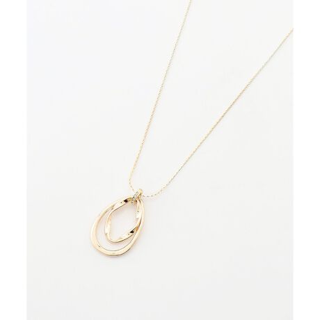 ・ビジューパーツが上品なロングネックレス・モチーフの二重リングが揺れて、女性らしい印象を演出するデザイン