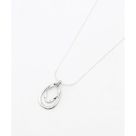 ・ビジューパーツが上品なロングネックレス・モチーフの二重リングが揺れて、女性らしい印象を演出するデザイン