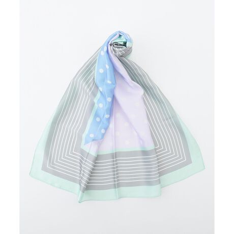 ・柔らかで落ち着いたカラーコンビネーションのスカーフ・コーディネートに合わせやすく、春らしいカラーをプラスする一枚・首元に巻いたり、バッグのアクセサリーとしてトッピングしたりと汎用性の高いアイテムです