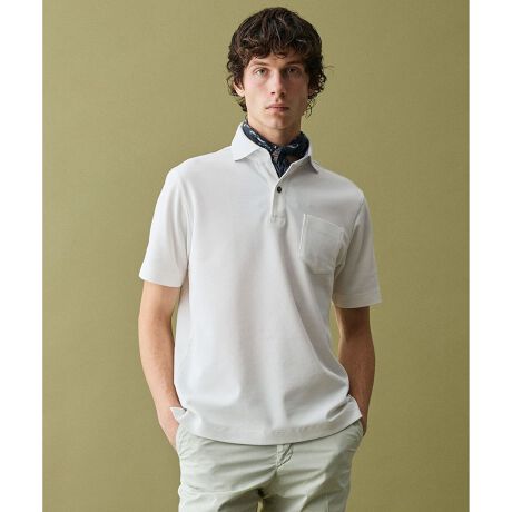 ブランド定番のポロシャツを、使いやすい無地で仕上げた新作です。襟の開き具合(セミワイドカラー)やボタンの位置を細かく調整し、ジャケットを羽織った時も首元がすっきりと美しく見えるように工夫されています。