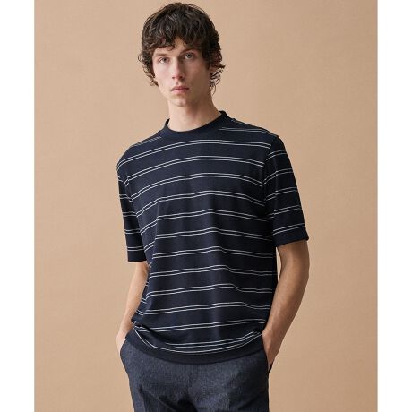 シンプルなボーダー柄のデザインです。肌にまとわりつかないシャリ感と、生地特有の伸縮性で、動きやすく快適な着心地を実現しました。日本の夏に最適な一枚です。