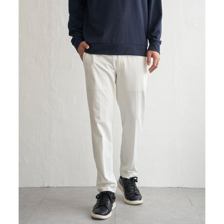表情のある接触冷感ピケ素材を使用した、イージー仕様のテーパードパンツ。