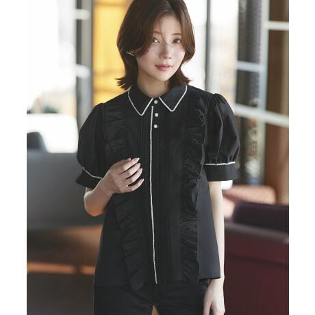 ・レイヤーフリル、ビジューテープ&ビジューボタンで、アクセサリー要らず。