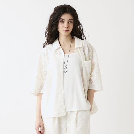 【M〜L】スクエアレースタックスリーブシャツジャケット