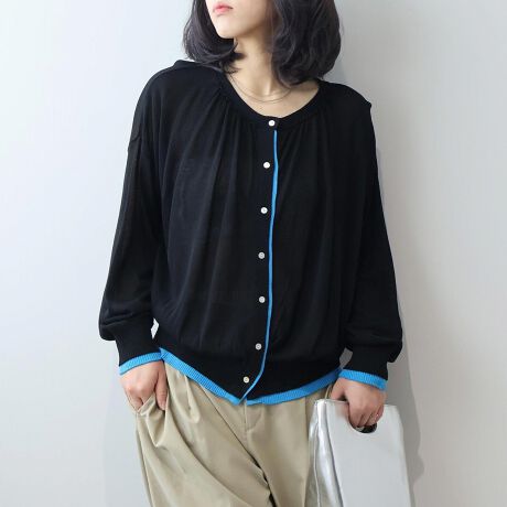 【大きいサイズ】【接触冷感/UVカット】シャイニー天竺レイヤードライクギャザーカーディガン