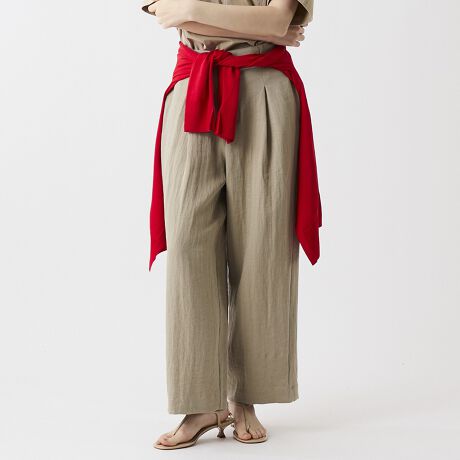 トレンド感のあるゆったりとしたワイドシルエットに、ナチュラルな素材感をプラスしたフルレングスパンツです。