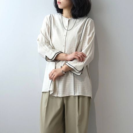 【大きいサイズ】ドビーボーダーパイピングブラウス