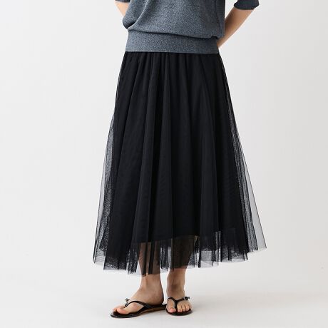 甘くなりすぎない洗練されたデザインで、幅広いスタイルに合わせやすい大人のチュールスカートです。
