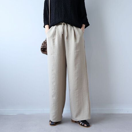 爽やかなストライプで洗練された大人のリラックス。上品に穿きこなすイージーパンツ。