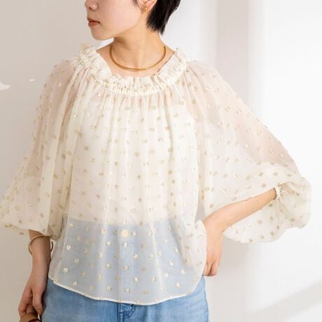 ・ジョーゼット素材に金糸のドット柄のカットジャガードを施した、華やかな主役ブラウス