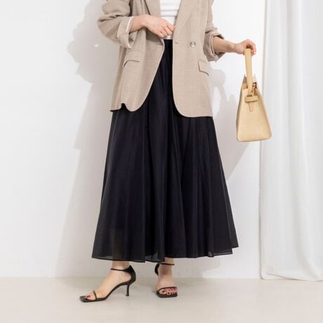 ・上品な光沢がクリーンな印象のシアーローン素材を使用した軽やかなフレアースカート