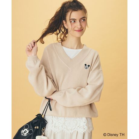 デザイン・袖巾にゆとりを持たせたシルエットで、インナーを重ねやすくロングシーズン活躍・程よいVネックが抜け感を演出し、大人のリラックススタイルにぴったり・胸元の小さなミッキーマウス刺繍が、さりげないアクセントに