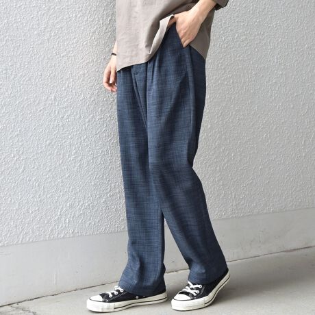 フロントにタックを入れ、こなれた雰囲気もある快適な穿き心地のパンツ。