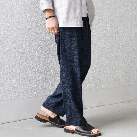 ウエストは後ろ側のみゴム入りシャーリング仕様にしたリラックスパンツです。