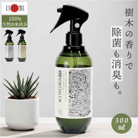 【心安らぐ樹木の香りで満たされる】 100%天然由来成分の力でお部屋をリフレッシュ。上質な香りと清潔感の「KINOWAファブリック&ルームミスト」。【清潔を保つ天然由来の除菌力】 植物の力で気になるニオイや菌にアプローチ。お部屋の空気を心地よく整える◎【手軽にリフレッシュできる操作性】 シュッとひと吹きで癒やしの空間へ。忙しい家事の合間にもサッと使えるスプレータイプ!【たっぷり使える納得のサイズ感】 300mlの大容量で毎日惜しみなく。リビングや寝具など家中どこでも活躍〇【お部屋に馴染む洗練された外観】 プラスチック製の軽量ボトルがお洒落。見える場所に置いてもインテリアを邪魔しない♪【安心感を与える信頼の国内生産】 厳しい品質管理のもとで作られた日本製。自然な香りに包まれる上質な暮らしを提案。