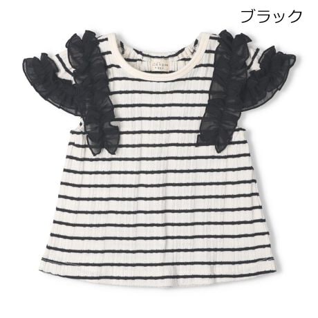 デザイン違いの半袖Tシャツ。ブラックは凹凸感のあるボーダーのリブ素材にシフォンが映えるトレンド感のあるデザイン。スミブラックは毎年人気の無地とドット柄とレースの異素材切替のティアードデザイン。ピンクは大き目のレース衿とリボンのモチーフがポイント!どのデザインも衿ぐり後ろはゴム仕様になっているので、着脱もスムーズに出来ます。【アイテム】半袖 プレゼント ギフト プルオーバー 赤ちゃん服 ベビー服 贈り物 トップス 無地 シンプル ガーリー カジュアル お洒落 オシャレ かわいい 可愛い 普段着 デイリーウェア お出かけ着 子ども こども 女児 女の子 ガールズ キッズ ベビーサイズ 幼稚園 保育園通園 2026年春夏物新作 丸高衣料 黒色 ピンク 水玉 りぼん キッズズー