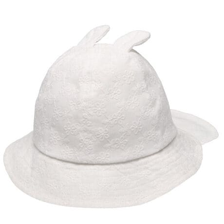 ベビーらしい耳付デザインの帽子、ハット。オフホワイトはレース素材のうさ耳、ブルーはダンガリー素材でねこ耳デザイン。日除けのたれ付き、UVカット加工でベビーにも安心。あごゴム付き。被るだけで、とっても可愛い動物なりきりアイテム。【アイテム】 雑貨 カジュアル お洒落 オシャレ かわいい 可愛い 普段着 デイリーウェア お出かけ 子ども こども 女児 女の子 ガールズ キッズ ベビーサイズ トドラーサイズ 幼稚園 保育園 小学校 通園 通学 小学生 遠足 旅行 2026年春夏物新作 丸高衣料 小物 白色 青色 動物 アニマル ウサギ ネコ 猫 キッズズー