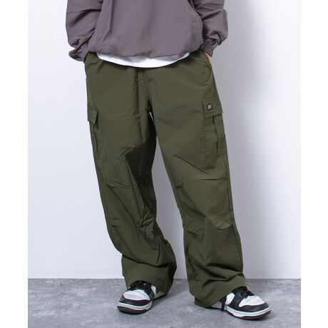 【item info】軽くて動きやすいナイロン素材を使用したワイドカーゴパンツ。存在感のあるカーゴポケットに、織ネームデザインを施し、ストリートテイストをプラスしました。ゆったりとしたワイドシルエットで動きやすく、デイリー使いはもちろんアクティブなシーンにも対応。裾はドローコード仕様の2WAYデザインで、シルエットの調整が可能。トップスを選ばず、幅広いコーディネートに取り入れやすい一本です。
