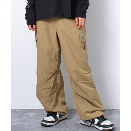【item info】軽くて動きやすいナイロン素材を使用したワイドカーゴパンツ。存在感のあるカーゴポケットに、織ネームデザインを施し、ストリートテイストをプラスしました。ゆったりとしたワイドシルエットで動きやすく、デイリー使いはもちろんアクティブなシーンにも対応。裾はドローコード仕様の2WAYデザインで、シルエットの調整が可能。トップスを選ばず、幅広いコーディネートに取り入れやすい一本です。