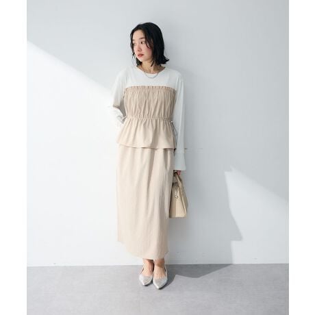 自然にスタイルアップする、上品ドッキングデザインペプラムの切り替えが目を引き、一枚で主役になるデザインです。異素材を組み合わせることで奥行きのある表情を演出し、シンプルながらも洗練された印象に仕上がります。ウエストをやさしく絞れる仕様のため、体型を気にせず着用でき、自然なスタイルアップが期待できます。柔らかな素材感で動きやすく、デイリー使いにも適しています。レイヤード風の見え方がこなれ感をプラスし、アクセサリーやバッグも映えます。カジュアルシーンに取り入れやすく、着るだけでバランスの取れた装いが完成します。大人の上品カジュアルを楽しみたい方におすすめです。透け感[ややあり]