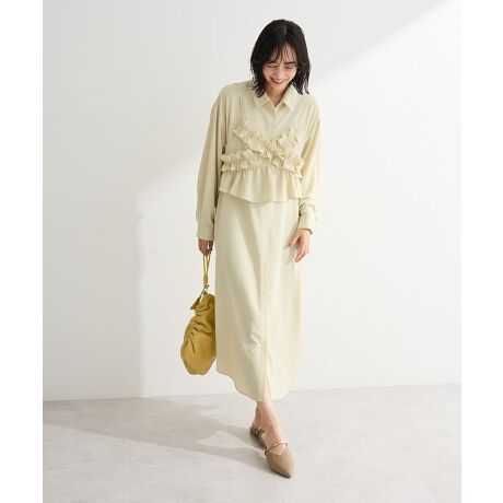 着こなし自在、華やぎ重ねる上品セットフリルビスチェとシャツワンピースがセットになった、着回し力の高いアイテムです。立体感のあるフリルデザインが胸元を華やかに演出し、シンプルなシャツワンピースに重ねるだけで旬のレイヤードスタイルが完成します。それぞれ単品でも使えるため、ワンピースは一枚で上品に、ビスチェはお手持ちのトップスに合わせてアクセントとしても活躍します。程よくゆとりのあるシルエットで体のラインを拾いにくく、自然にスタイルアップが叶います。きれいめにもカジュアルにも合わせやすく、通勤やお出かけ、セレモニーシーンまで幅広く対応できる万能デザインです。季節の変わり目にも取り入れやすく、ワードローブに加えるだけでコーディネートの幅が広がります。透け感[ややあり]