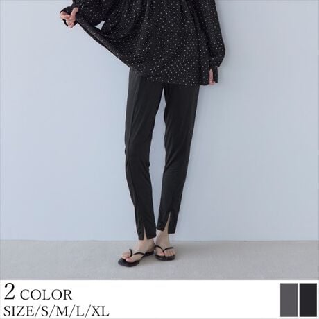 ・脚をすっきりと見せてくれるセンタースリットデザインのレギンス。