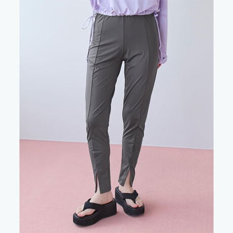 ・脚をすっきりと見せてくれるセンタースリットデザインのレギンス。