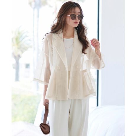 清涼感のあるシアーメッシュ素材の軽やかなテーラードジャケット。