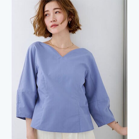 デコルテを美しく引き立てるハートネックデザインが魅力のブラウス。程よいハリ感のある素材がシルエットをきれいに保ち、女性らしい立体感を演出します。一枚で顔まわりが華やぎます。オフィスやお出かけにもおすすめです。[型番:BHXU2057]