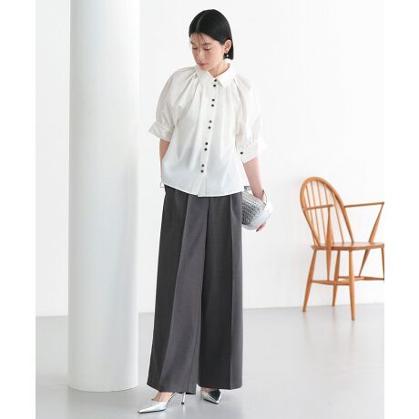 【洗える/2set】タックギャザーシャツ/綺麗シルエット・ワイドパンツ