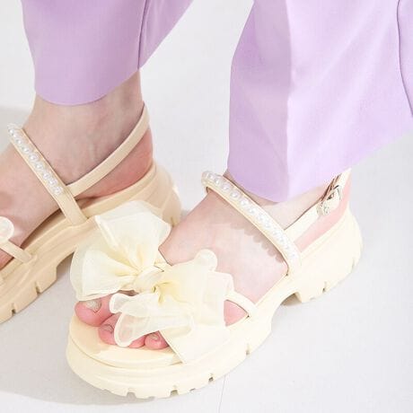 【26春夏新作】シアーリボン×パール厚底サンダル/61210